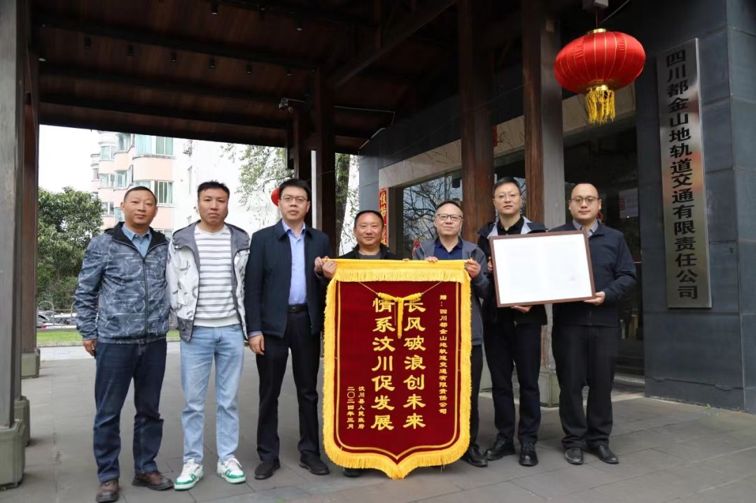 3月27日,汶川縣發(fā)改委局長(zhǎng)鄒濤、統(tǒng)計(jì)局局長(zhǎng)陳康代表汶川縣人民政府專(zhuān)程將一面錦旗和一封感謝信送至都金公司,感謝都金公司為汶川經(jīng)濟(jì)發(fā)展作出的積極貢獻(xiàn),都金公司黨委副書(shū)記、董事、總經(jīng)理徐代宏代表公司接收錦旗和感謝信。