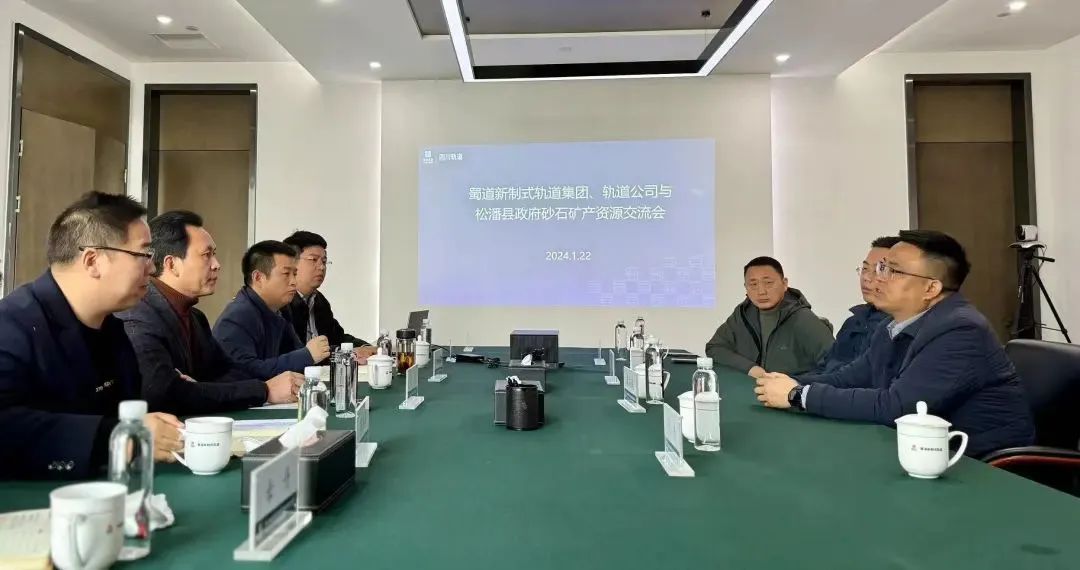 1月22日,松潘縣人民政府黨組成員、副縣長蒙成鵬帶松潘縣自然資源局副局長吳建軍一行赴軌道公司就川主寺鎮道班建筑用砂巖礦資源相關事宜座談交流。蜀道新制式軌道集團投發部部長鐘遠山,軌道公司黨支部書記、執行董事文成,黨支部副書記、總經理郭憲軍及蜀道新制式軌道集團投發部、軌道公司綜合開發部相關人員參與交流。
