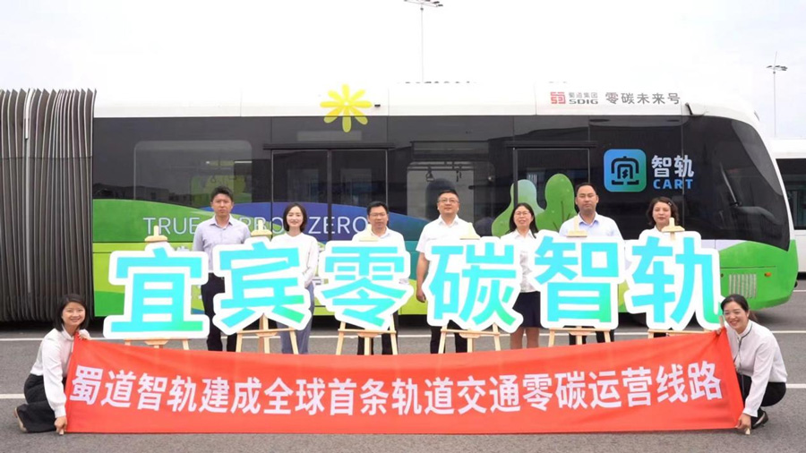2023年5月底,蜀道智軌零碳示范線——宜賓智軌T1線正式收到全球軌道交通行業(yè)第一張零碳運營線路PAS2060碳中和證書。