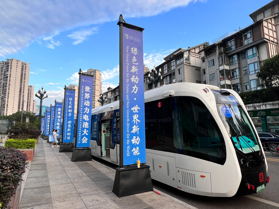 6月8日至10日,2023世界動力電池大會在宜賓召開。蜀道新制式軌道集團所屬川南軌道公司繼2022世界動力電池大會之后,再次承接了2023世界動力電池大會期間的運輸保障任務(wù)。宜賓智軌T1線自2019年運營以來,已先后承接“中國國際名酒博覽會”“2022國際竹業(yè)博覽會”等多次盛會的運輸保障任務(wù),向各界友人展示了智軌“準點、快捷、安全、舒適、綠色”的魅力。
