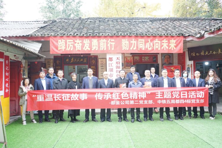 11月22日下午,都金公司第二黨支部全體黨員、入黨積極分子與中鐵五局都四山地軌道交通4標項目部黨支部一行20余人赴都江堰長征書院開展“重溫長征故事 傳承紅色精神”主題黨日活動。