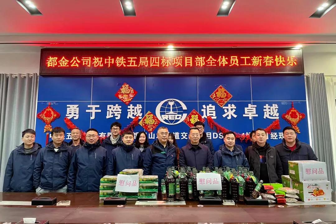 2022年2月1日,正值農(nóng)歷大年初一,蜀道新制式軌道集團(tuán)黨委委員、副總經(jīng)理劉德衛(wèi)帶隊(duì)赴都四項(xiàng)目檢查指導(dǎo)各標(biāo)段春節(jié)期間施工情況,向春節(jié)期間仍奮戰(zhàn)在一線的參建人員致以親切的問候和節(jié)日的祝福,為大家送去了豐富的慰問品。慰問過程中,劉德衛(wèi)仔細(xì)詢問了一線參建人員“就地過年”的工作、生活等情況,對(duì)他們放棄與家人團(tuán)聚,堅(jiān)守工作崗位的精神表示了由衷的欽佩和衷心的感謝。并要求各單位務(wù)必做好一線參建人員的后勤保障,要照顧好、安排好春節(jié)期間一線參建人員的生活。讓堅(jiān)守一線的參建人員都能安心工作和生活。