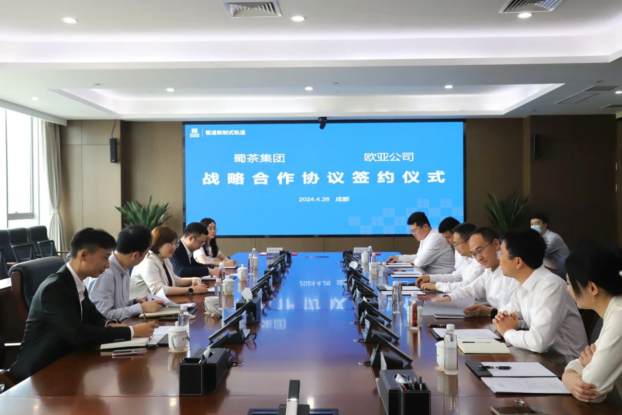 4月26日,蜀道新制式軌道集團所屬歐亞公司與四川省農產品經營集團所屬蜀茶集團在成都正式簽訂戰略合作協議。蜀道新制式軌道集團黨委委員、財務總監,歐亞公司黨支部書記、執行董事、總經理尚宗飛,蜀道新制式軌道集團副總經理劉剛,省農經集團董事長、蜀茶集團董事長何昕,蜀茶集團總裁陳思遠出席簽約儀式。