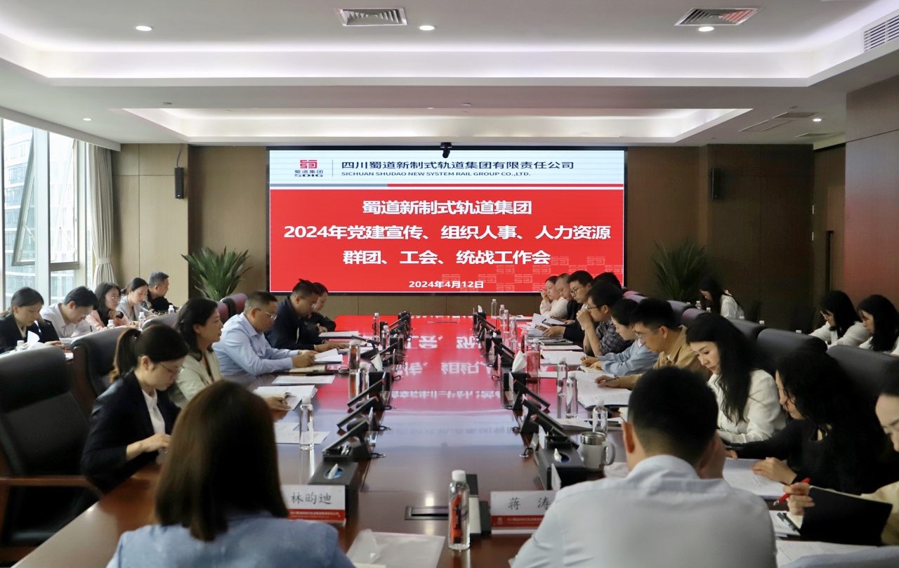 4月12日,蜀道新制式軌道集團召開2024年黨建宣傳、組織人事、人力資源、群團工會、統戰工作會,安排部署2024年各條線重點工作。蜀道新制式軌道集團黨委副書記、職工董事、工會主席龍潛出席會議并講話。黨委工作部(人力資源部、宣傳部)部長陳云龍安排部署2024年黨建宣傳、組織人事、人力資源重點工作,群團工作部(工會辦公室、統戰部、團委)部長鐘旖安排部署2024年群團工會、統戰重點工作。