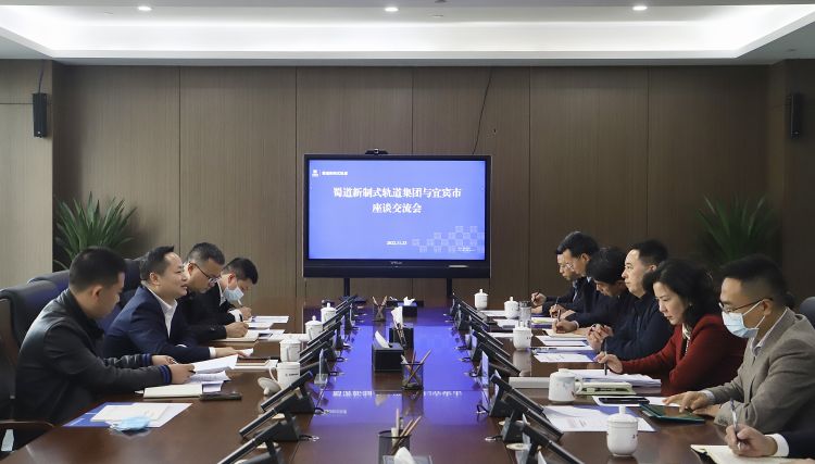 11月23日下午,蜀道新制式軌道集團黨委書記、董事長韓瑀萱與宜賓市委常委、統戰部長陶學周一行在蜀道新制式軌道集團舉行合作交流。宜賓市經濟合作和新興產業局機關黨委書記陳正,蜀道新制式軌道集團黨委副書記、副董事長、總經理張瑞英,黨委委員、副董事長李洲等出席會議。
