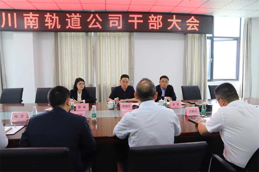 5月19日,川南軌道公司召開干部大會。蜀道新制式軌道集團黨委書記、董事長韓瑀萱,黨委副書記、職工董事、工會主席龍潛,黨委工作部(人力資源部、宣傳部)副部長滕婭出席會議。會議由龍潛同志主持。