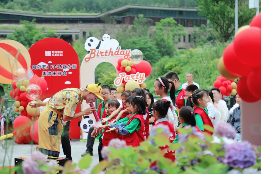 集體生日會在歡快的小丑魔術表演和奇幻泡泡秀中拉開序幕,現場互動中不時爆發出陣陣歡樂的笑聲。此次活動精心策劃了視頻連線環節,小朋友們與在海外工作的爸爸們互訴思念之情,并囑托駐外工作的爸爸們注意安全、安心工作,爸爸們也通過視頻表達了對蜀道集團組織開展此次夏令營集體生日會的感謝和在海外繼續發揚“敢于擔當、永爭一流”企業精神的決心?;顒蝇F場,大家齊唱生日歌,共切生日蛋糕,共同許下生日愿望,遠在海外的爸爸們也通過視頻全程陪伴見證。
